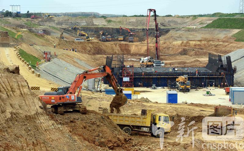 2020年8月7日,在引江濟淮工程安徽省合肥市廬江縣萬山鎮(zhèn)永橋村廬江船閘施工現(xiàn)場,中交第二航務工程局有限公司的建設者們用挖掘機正在緊張施工取土,運輸土方工程車川流不息,船閘底部混凝土澆筑正在施工,建設現(xiàn)場一片繁忙景象。當日是農(nóng)歷二十四節(jié)氣中“立秋”節(jié)氣,中交第二航務工程局有限公司的建設者們抓住秋后晴天少雨,及時排澇施工,搶抓工程進度。