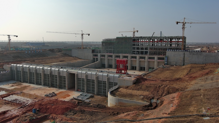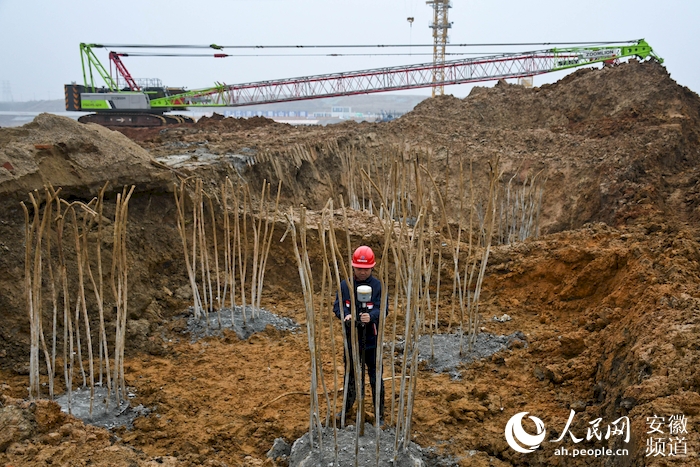 參建人員在蜀山泵站樞紐工作。人民網(wǎng) 周坤攝