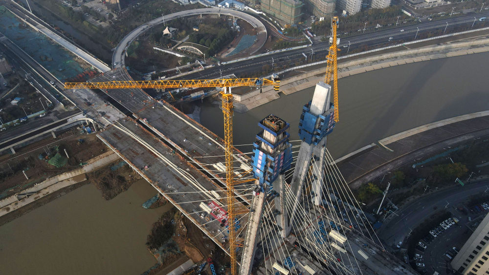 當(dāng)日,由中鐵四局承建的引江濟(jì)淮工程江淮溝通段金寨南路橋主塔封頂。該橋跨越引江濟(jì)淮工程航道,全長(zhǎng)635米,設(shè)計(jì)為獨(dú)塔斜拉橋,此次封頂?shù)闹魉?12米。引江濟(jì)淮工程溝通長(zhǎng)江、淮河兩大水系,是我國(guó)跨流域、跨省重大戰(zhàn)略性水資源配置和綜合利用工程。