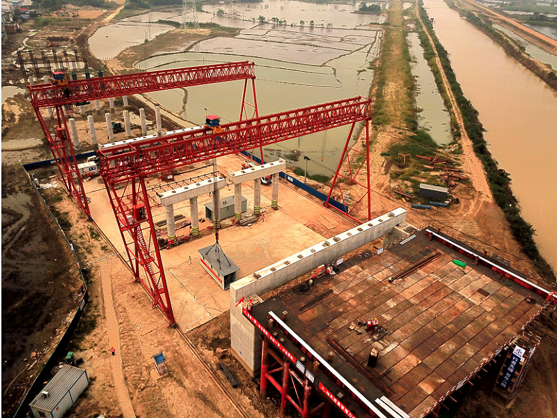 引江濟(jì)淮工程羅埠大橋首節(jié)段鋼箱梁成功架設(shè)